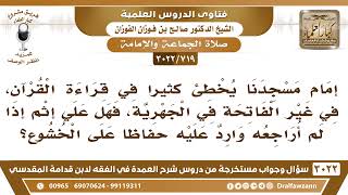 [719 -3022] إمام مسجدنا يخطئ كثيرا في قراءة القرآن في غير الفاتحة فهل علي إثم إذا لم أرد عليه؟