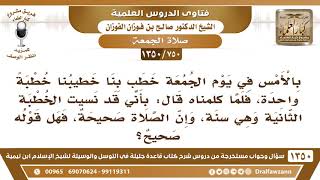 [750 /1350] خطب خطيب الجمعة خطبة واحدة، فلما كلمناه قال: قد نسيت وهي سنة، فهل قوله صحيح؟