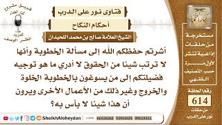 اه اشرتم حفظكم الله الى اه مسألة الخطوبة وانها لا ترتب اه شيئا من الحقوق لا ادري ما هو توجيه فضيلتكم الى ان الى من يسوغون بالخطوبة الخلوة والخروج وغير ذلك من الاعمال - 00:00:00ضَ