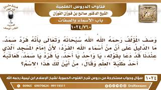 فضيلة الشيخ وفقكم الله ووصف المؤلف رحمه الله الله سبحانه وتعالى بانه ارض صمد. فما الدليل على من اسماء الله لان امام المسجد الذي عندنا قد دعا لقوله يا وائل يا احد يا رب يا صمد فعاتبه احد - 00:00:00ضَ