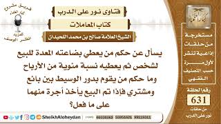 مستمع هشام محمد عبدالله يسأل عن حكم من يعطي بضاعته المعدة للبيع لشخص ثم يعطيه نسبة مئوية من الارباح. وما حكم من يقوم بدور الوسيط بين بائع ومشتري فاذا تم البيع ياخذ اجرة من - 00:00:00ضَ