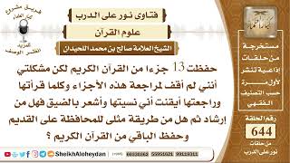 يقول حفظت ثلاثة عشر جزءا من القرآن الكريم لكن مشكلتي انني لم اقف لمراجعة هذه الاجزاء وكلما قرأتها وراجعتها ايقنت اني نسيتها واشعر بالضيق. فهل من ارشاد؟ ثم هل من طريقة مثلى للمحافظة - 00:00:00ضَ