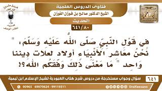 [80 /641] ما معنى قول النبي ﷺ: " نحن معاشر الأنبياء أولاد لعلات ديننا واحد؟ الشيخ صالح الفوزان