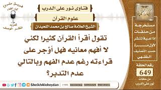 تقول اقرأ القرآن كثيرا لكني لا افهم معانيه فهل اؤجر على قراءته رغم عدم الفهم وبالتالي عدم التدبر اذا كانت القراءة قراءة فيها تأن فانها في الغالب يكون لها اثر في الفهم - 00:00:00ضَ