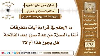 الحكم في قراءة ايات متفرقات اثناء الصلاة من عدة سور بعد الفاتحة هل يجوز هذا ام لا يجوز اذا احتاج الى ذلك انه مأمور بان يقرأ ما تيسر له من القرآن - 00:00:00ضَ