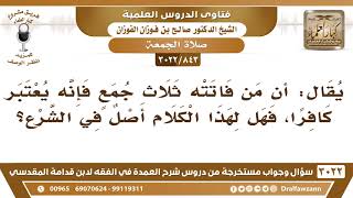 [843 -3022] ما صحة القول أن من فاتته ثلاث جمع يعتبر كافرا؟ - الشيخ صالح الفوزان