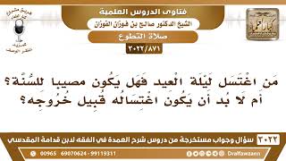 [871 -3022] من اغتسل ليلة العيد؛ هل يكون مصيباً للسنة؟ أم لا بد أن يكون اغتساله قبيل خروجه؟