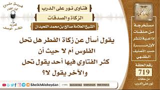 من آآ جدة يقول اسأل عن زكاة الفطر هل تحل فلوس ام لا؟ حيث ان كثر الفتاوي فيها احد يقول تحل والاخر يقول لا وحيث ان هذا البرنامج نور على الدرب ان شاء الله ما يفتي الا بالحق ارجو ان يفتيني في هذه المسألة - 00:00:00ضَ