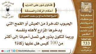 الحبوب المدخرة من العيش او القمح التي يدخرها المزارع لاهله ونفسه وربما لتكون بذور هي تصل احيانا الى اكثر من مئة كيس هل عليها زكاة هي لا زكاة فيها كأنها - 00:00:00ضَ