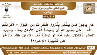[908 -939] هل يجوز لمن يشعر بنزول قطرات من البول أن يتوضأ قبل الأذان بمدة يسيرة كعشر دقائق؟