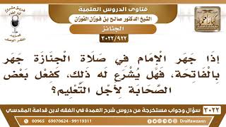 [922 -3022] هل يشرع للإمام في صلاة الجنازة أن يجهر بالفاتحة لأجل التعليم؟ - الشيخ صالح الفوزان