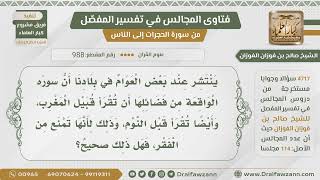 [988- 4717] هل ثبت فضل في قراءة سورة الواقعة قبل المغرب وقبل النوم؟ - الشيخ صالح الفوزان