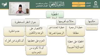 خطبة المرأة في عدة طلاق رجعي منهي عنها تحريما سواء كانت الخطبة تصريحا او تعريضا وعرفنا ما معنى التصريح وما معنى التعريف وخطبة المرأة بعدة طلاق بائن منهي عنها تحريما اذا كانت الخطبة تصريحا لا تعريفا - 00:06:31ضَ