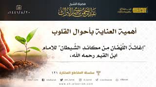 تألفوا في ذلك المؤلفات. ومن اجلها عندي اغاثة اللافان من مكائد الشيطان الامام ابن القيم رحمه الله ولابن تيمية رسالة تعرف التحفة العراقية كذلك في اعمال القلوب ومن الكتب المشتملة على هذا الجانب - 00:04:44ضَ