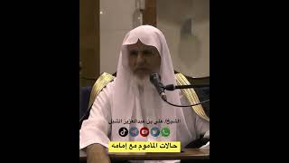 فان للمأموم مع الامام في الصلاة صلاة الجماعة فرضا كالصلوات الخمس والجمعة او فرض كفاية كما في العيدين او سنن متأكدة كما في الكسوف والخسوف والتراويح والاستسقاء. للمأموم مع امامه اربع حالات - 00:00:00ضَ
