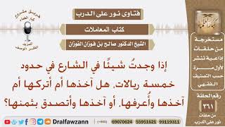 جزاكم الله خيرا واحسن اليكم اذا وجدت شيئا في الشارع في في حدود خمسة ريالات. هل اخذها ام اتركها ام اخذها او اخذها واتصدق بثمنها. جزاكم الله خيرا. اذا كان يبلغ خمسة ريالات فهذه نقطة تأخذها بشرط ان تعرفها سلف. فان - 00:00:00ضَ