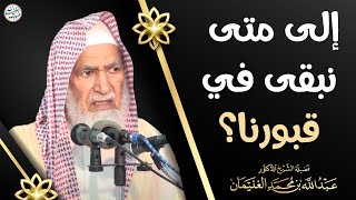 ولكن المقصود الى متى نبقى في القبور العلم عند الله جل وعلا. ولكن من المتيقن اننا سنبقى في قبورنا اكثر من بقاءنا في بيوتنا. في هذه الحياة الا نعد لهذا شيء - 00:01:10ضَ
