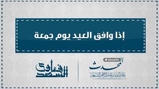 اذا وافق العيد الاكبر الذي هو الاضحى او الفطر العيد الاصغر الذي هو يوم الجمعة فان هناك حكما يختلف كما تقدم عن باقي الايام عندما يقع العيد فيها هذا الحكم بما انه اجتمع عيدان - 00:01:42ضَ