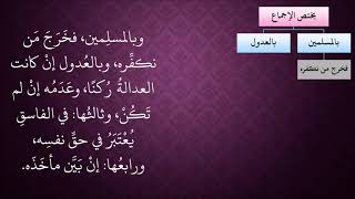 انتهينا فقرة جديدة وبالمسلمين اي وعلم اختصاصه يعني الاجماع المسلمين هذه من اين اخذها من قوله مجتهد الامة. فقال فخرج من نكفره فمن خرج عن دائرة الاسلام علم قطعا انه لا حظ له في الدخول في قضايا الاجماع. نعم - 00:00:24ضَ