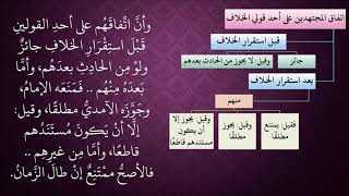 واستقر الخلاف بمعنى اختلفوا على قولين ثم مضى زمن ثم تراءوا ان يجتمعوا على قول. وقلنا الامام يجوز الاتفاق والامدي يمنعه طيب المسألة الان ليس الخلاف ليس الاتفاق الواقع بعد القولين - 00:07:52ضَ