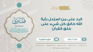 احسن الله اليكم يقول السائل آآ كيف يراد على آآ من يحتج بقوله تعالى الله خالق كل شيء على خلق القرآن الله خالق كل شيء مخلوق جميع المخلوقات هي خلق الله - 00:00:00ضَ