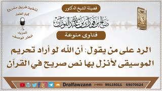 الرد على من يقول أن الله لو أراد تحريم الموسيقى لأنزل بها نص صريح في القرآن - الشيخ صالح الفوزان