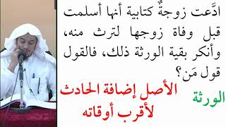 ايش القاعدة؟ الاصل في الامور العارضة العدم ادعت زوجة كتابية انها اسلمت قبل وفاة زوجها لترث منه وانكر بقية الورثة ذلك فالقول قول من نعم ادعت زوجة كتابية انها اسلمت قبل وفاة زوجها - 00:02:51ضَ
