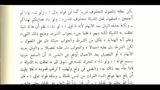 ونكتة حذفه البيان بعد الابهام وسرعة العلم به والاختصار. نعم. اختصار العلم به نعم اه لانه لما قيل لو شاء علم ان هناك شيئا تعلقت به المشيئة. لكنه مبهم. فاذا الشرط له مدخل في - 00:12:33ضَ