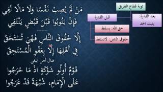 ضع الطريق قال من لم يصب نفسا ولا مالا نوفي فان يتوبوا قبل قبض ينتفي الا حقوق الناس فهي تستحق في اهلها الا بعفو في المستحق قتال اهل البغي قوم اولوا شوكة اذ ما خرجوا على الامام شبهة قد عرجوا. هؤلاء هم البغاء. نبدأ بالنسبة لتوبة قاطع الطريق قبل ما - 00:00:21ضَ