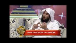 فذكر الصدقة وذكر التعفف عن المسألة ثم قال اليد العليا خير من اليد السفلى. قال عليه الصلاة والسلام مفسرا هذه اليد وتلك اليد الوليد العليا هي هي المعطية. واليد او المنفقة واليد السفلى هي السائلة - 00:03:06ضَ