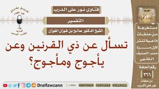 جزاكم الله خيرا واحسن اليكم تسأل اخيرا شيخ صالح عن ذو القرنين وعن يأجوج ومأجوج. اما ذي القاروين فهو ملك صالح ملكه الله الارض ومكنه بالقوة وسافر في الارض الاصلاحات ومن ذلك انه اقام السد بين اهل الارض وبين ومأجوج وهم امة من الناس وخلق - 00:00:00ضَ