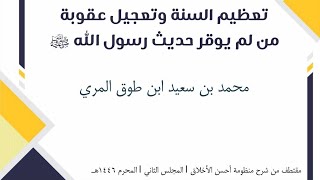 عقوبة من بلغه عن النبي صلى الله عليه وسلم حديث فلم يعظمه ولم يوقره. وورد جملة من الاخبار التي تضمنت عقوبات ومثلات في حق من لم يعظم حديث رسول الله صلى الله عليه وسلم - 00:04:21ضَ