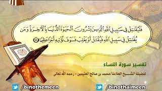 وهو الذي قاتل لتكون كلمة الله هي العليا كما فسر ذلك النبي صلى الله عليه وعلى اله وسلم فيقتل او يغلب ان قتل فهو شيء او غلب فهو فائز ولا ولا يبطل غلبه اجره. ولهذا قال فسوف نؤتيه اجرا عظيما - 00:03:27ضَ