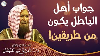 فنقول في جوابها اهل الباطل من طريقين مجمل ومفصل المجمل هو الذي يشمل الامور الكثيرة والذي يشمل كل ما اورد على الانسان اجمالا يعني انه لا يخص مسألة بعينها وانما يكون جوابا لكل مسألة - 00:00:00ضَ