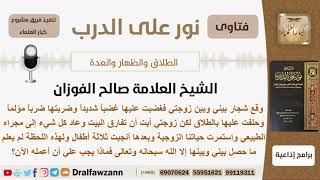 اه سؤاله الاخير يقول وقع شجار بيني وبين زوجتي فغضبت عليها غضبا شديدا وضربتها ضربا مؤلما وحلفت عليها بالطلاق ولكن زوجتي ابت ان تفارق البيت وعاد كل شيء الى مجراه الطبيعي. واستمرت حياتنا الزوجية وبعدها انجبت ثلاثة - 00:00:00ضَ