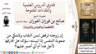 فضيلة الشيخ وفقكم الله هذا سائل يقول يقول ان زوجته ترفض لبس النقاب وتشتكي من صعوبة التنفس اذا لبسته سؤاله هل افارقها لاجل هذا ام اني اصبر عليها هذا ما هو بصحيح النقاب لا لا يمنع النفس - 00:00:00ضَ