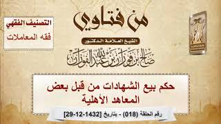 حكم بيع الشهادات من قبل بعض المعاهد الأهلية - الشيخ صالح الفوزان