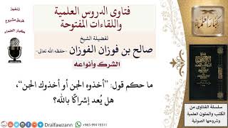 حكم قول أخذوه الجن أو أخذوك الجن، هل يعد إشراكا بالله؟ لمعالي الشيخ صالح الفوزان