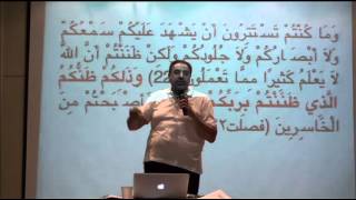 ولكن ظننتم ان الله لا يعلم كثيرا مما تعملون. انتم كنتم فاكرين ربنا ما يعرفش. كنتم فاكرين الحاجات دي مش هتشهد عليكم. ذلك ظنكم الذي ظننتم بربكم ارداكم خسئتم ايه ده الكلام ده ؟ يا جماعة نبرة غضب - 00:30:11ضَ