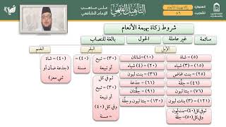 بسم الله الرحمن الرحيم نتناول باذن الله تعالى بعد ان تكلمنا على شروط زكاة النقدين نتناول شروط زكاة بهيمة الانعام فشروط زكاة بهيمة الانعام وبهيمة الانعام المراد بها كما مر معنا الابل والبقر والغنم - 00:00:03ضَ