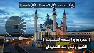 يقول السائل احسن الله اليكم ما هي سنن يوم الجمعة في حق الخطيب الحمد لله رب العالمين. لقد قرر الفقهاء رحمهم الله تعالى انه يستحب للخطيب في يوم الجمعة عدة اشياء مع ما يشترك في - 00:00:01ضَ