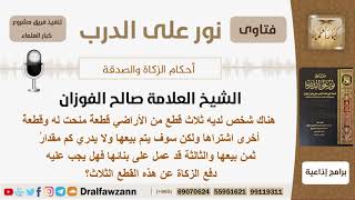 هناك شخص لديه ثلاث قطع من الاراضي. قطعة منحت له وقطعة اخرى اشتراها ولكن سوف يتم بيعها ولا يدري كم مقدار ثمن بيعها؟ والثالثة قد عمل على بنائها فهل يجب عليه دفع الزكاة عن هذه القطع الثلاث؟ اما القطع التي ينويها - 00:00:00ضَ
