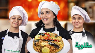 معلقة بدنا نجيب لبن فراح نجيب لبن الجنيدي. وكل واحد علبة. ملح قلب المقلوبة كيف رح تقلب المقلوبة؟ انا ما حالبه انتم حتقلبوها يعني ناكل من الارض. عالهرا. تسعة. تمانية. سبعة. ستة. خمسة - 00:15:57ضَ