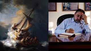 على ضهر السفينة شفت مشهد حلو ازاي والدنيا الشمس طالعة اهي. ها جاءتها ريح عاصف وجاءهم الموج من كل مكان. المشهد اتقلب مش مشهد اتقلب رمادي. الشمس اختفت والدنيا ضلمت والمنظر بتاع المجمل كل ناحية مرعب. مرعب. الاية بتعمل لك مؤثرات - 00:10:44ضَ