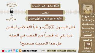 قال الرسول ﷺ من قرأ الإخلاص ثمانين مرة بني له قصراً من الذهب في الجنة هل هذا الحديث صحيح؟ الفوزان