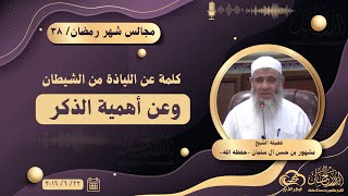 القيم ويذكر ويقرأ ويسرد ابن القيم رحمه الله. ثمار الذكر وبركات الذكر واثر الذكر على العبد انه يرفع مقامه يعلم قيمة الذكر. ولذا الذكر يكفي ان يكون الذكر لهذا من الشيطان. يكفي - 00:11:11ضَ