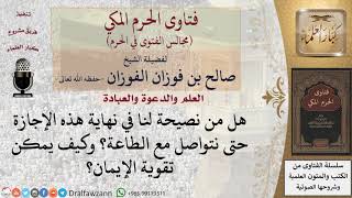 يقول سماحة الشيخ هل من نصيحة لنا في نهاية هذه الاجازة حتى نتواصل مع الطاعة وكيف يمكن تقوية الايمان الطاعة ما هي وقت العطلة فقط الطاعة دائما وابدا ما دام المسلم على قيد الحياة - 00:00:00ضَ