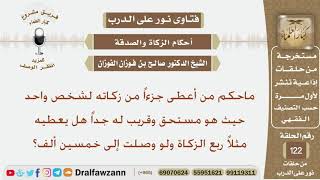 ماحكم من أعطى جزءاً من زكاته لشخص واحد حيث هو مستحق وقريب له جداً؟ الشيخ صالح بن فوزان الفوزان