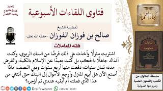 تتصدق في مقابله تحسد الربا الزيادة التي بنيت بها تتصدق من الدراهم لا يقابله وبالتخلص منها ولعل الله ان يتوب عليه - 00:00:55ضَ