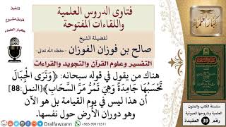 ما الرد على من يقول في قوله سبحانه ﴿وترى الجبال تحسبها جامدة وهي تمر مر السحاب﴾ للشيخ الفوزان